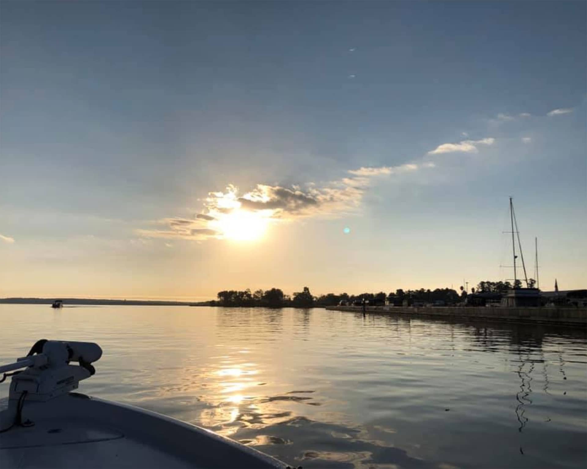 Collin Edwards Licensed Professional Guide of Lake Conroe Fishing Adventures Rides into Sunrise to Pick Up Customers on Lake Conroe on 2400 Pure Bay Bluewave Boat